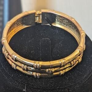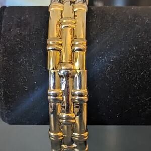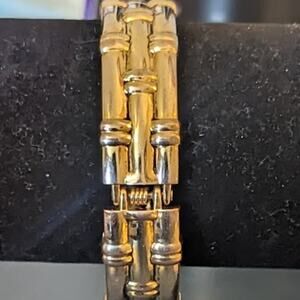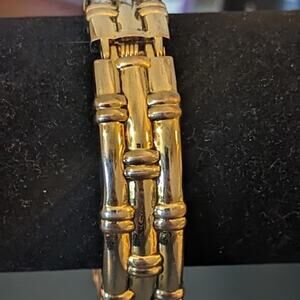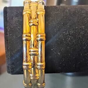 Vintage Bamboo Look Gold Tone Clamper Style Bracelet. This bracelet looks so elegant, classic and rich. Pre-owned, it is in great condition. See wrist measurement in photos. Really nice bracelet.