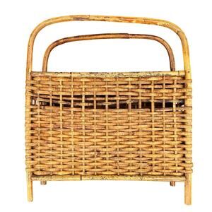 Add a touch of organic charm and functionality to your home with this vintage bamboo and rattan magazine rack. Hand-woven with natural materials, this freestanding holder features an open basket design with curved bamboo handles and a sturdy frame. Perfect for magazines, vinyl records, books, or even as a stylish catch-all for mail and papers.