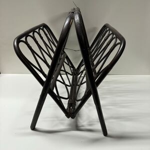 On of the side straps is broken in half but does not effect the rack. This vintage magazine rack is a unique addition to any home. Made from bamboo rattan, it has a rustic and charming appeal that is perfect for any casual setting. Its design is versatile, making it suitable for holding magazines, newspapers, and other types of reading materials. The rack is sturdy and durable, ensuring that it will last for years to come. If you're looking for a functional and stylish magazine rack, this vintage bamboo rattan option is an excellent choice.
