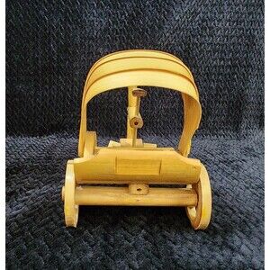 Crafted entirely from bamboo, it features functional pedals that turn and a canopy that tilts back and forth. Its warm, natural tones and unique construction make it a conversation piece for display on a shelf, desk, or curio cabinet.
