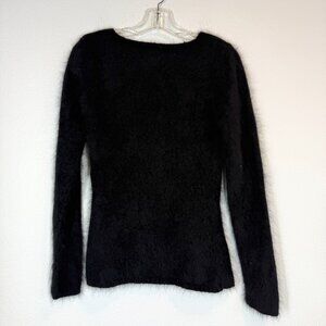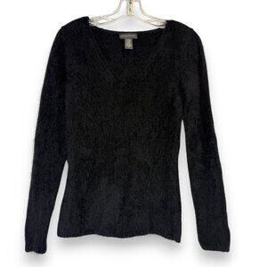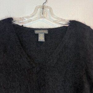 Vintage Banana Republic Angora Lambswool Sweater Medium Black V-Neck Fuzzy Women