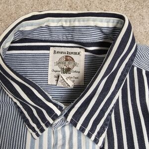 Vintage Banana Republic Safari & Travel Blue Multi Striped Button Down Shirt XL