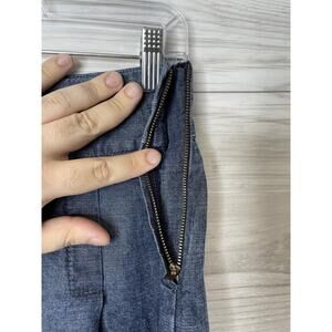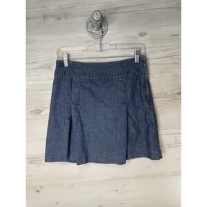 Vintage Banana Republic Skirt Womens 2 Blue Chambray Pleated A-Line Side Zip 00s