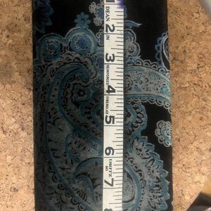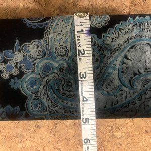 Vintage Banana Republic (2002) velvet ballet flats and matching clutch in whimsical black and blue paisley print. Good Condition. Shoes are made in Brazil and have leather soles. Clutch has zippered center section and card holders. Sold only as a set