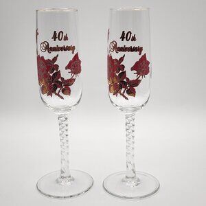 Vintage Banawe Canada 40th Anniversary Champagne/ Wine Glass Flute Rare Red Rose