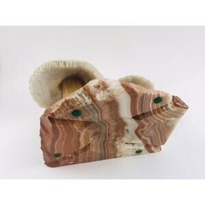 Vintage Banded Stone Marble Two Mushroom White Sculpture Primitive Wood Coral Ar