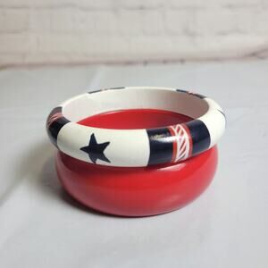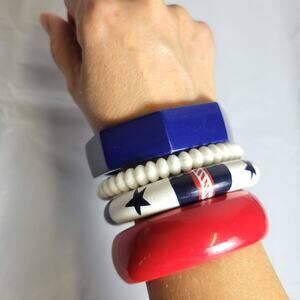 Vintage Bangle Bracelets Red/White/Blue 4th of July Chunky Stack of 4 Patriotic