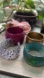 Vibrant set of bangle bracelets featuring pink, gold, black and white leopard print, and blue with peacock design.