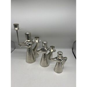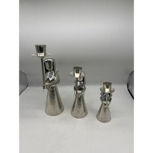 Vintage Banka Tin Angel Hammered Silver Candle Holder Set Of 3