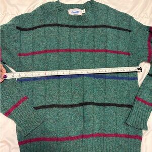 Vintage Bar Harbor Knits Made in USA Maine Sweater Striped Green Wool
