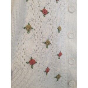 Vintage Bara Granny Core Cream Sweater Cardigan with 3D roses Size 36 XS??