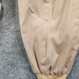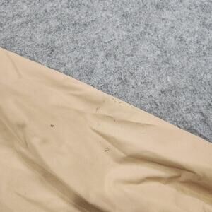 Condition: Good pre-owned vintage condition with moderate wear. Multiple small marks/stains on sleeves and front, light discoloration to rib knit cuffs/hem, and general wrinkles from storage. See photos for all noted flaws. Zipper and buttons function properly.