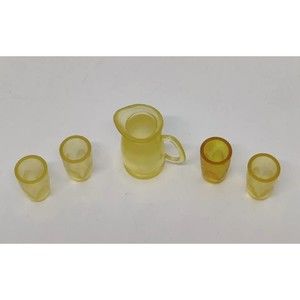Vintage Barbie 70s 80s Mattell Translucent Amber Pitcher 4 Drinking Glasses Set