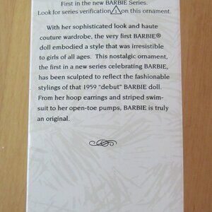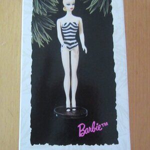 Collectible ornament is in perfect condition in original box, also in excellent condition. Ornament measures 4 1/2 inches tall and has a loop to add a ribbon for hanging. Great addition to a Barbie collection.