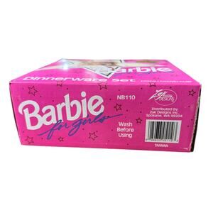 Adorable vintage Barbie dinnerware set from 1993! This delightful 3-piece set includes a plate, bowl, and cup, all brand new in the original box (NB110). Perfect for collectors or anyone who loves Barbie! This nostalgic set is sure to bring a smile to your face. Add a touch of vintage charm to your collection with this rare find! Don't miss out on this opportunity to own a piece of Barbie history. Grab it now!