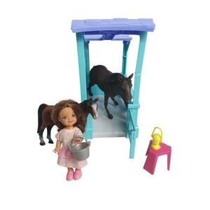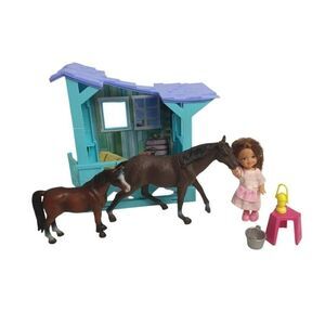 Barbie playset, horse stable, Kelly doll, toy horses, dollhouse accessory, interactive play, imaginative play, children's toy, plastic playset, collectible toy, Barbie horse, horse figurines, playset accessories