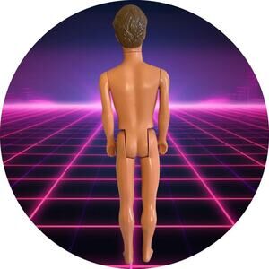 This vintage Barbie doll is a must-have for collectors and fans of the Cool Tops or Cool Teen Kevin product line. Not sure which. He has Zs in his eyes and highlighted brown hair with blonde so not sure- let me know if you know. The doll stands at 10.5 inches and features brown hair with highlights and blue eyes. This original, licensed reproduction doll is from from the 90s and was manufactured by Mattel. The doll is in excellent condition and ready to be displayed. Comes with no clothes.