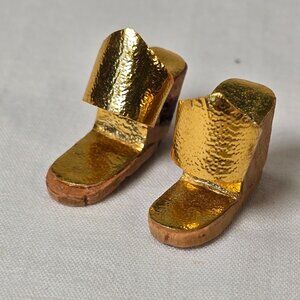 Vintage Barbie Shoes 1959–62 Gold Cork Wedge Sandals Early Mattel Fashion Pak High Heels Platforms 60s Metallic Mod
