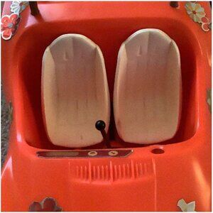 There are only a few scratches/dings/spots on the the body of the car. It still has the gear shift. There are some imperfections: some of the stickers are starting to peel off (see pics). There is no steering wheel or antenna. There are some dings/imperfections on the white seats. (see pics). I don't think this car will run, as the metal for where the batteries go is corroded. The engine doesn't snap in well and needs to be careful placed or it falls off. Inside, where Barbie and Ken's feet go, there are some plastic melts or dirt (see pic). There is some sticky sticker residue where the license plate should go. None-the-less, this is a very cute vintage toy! Overall, this is in fair condition...used, played with.