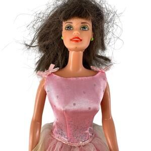 Vintage Barbie in Pink Satin Ombré Gown with Glitter Tulle Skirt Collectible