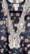 Vintage Barbizon Classic Satin Nightgown Floral Navy with Lace Trim Size L