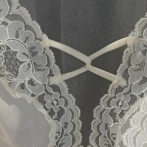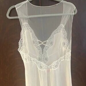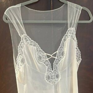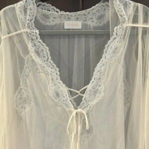 Vintage Barbizon Elegant Cream sheer Lace Trim Nightgown & Robe Sz Lg modest