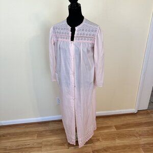 Vintage Barbizon Pink Nightgown House Robe Embroidered Full Button Eyelet Large