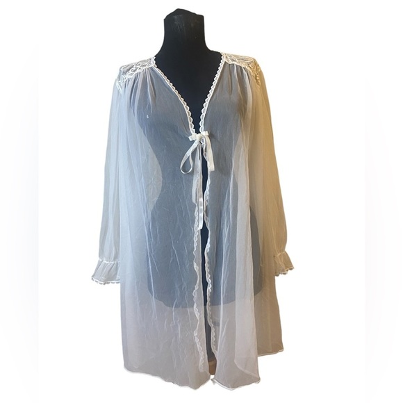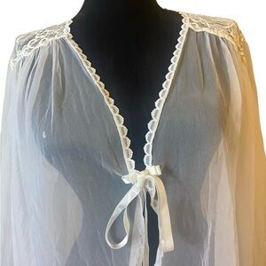 Vintage Barbizon Sheer White Lace Embroidered Peignoir/Robe