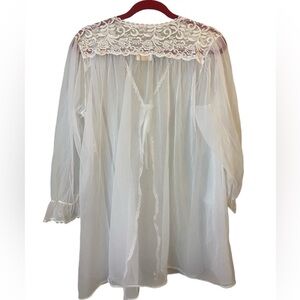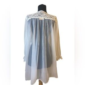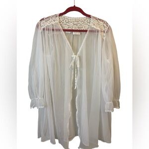 Vintage Barbizon Sheer White Lace Embroidered Peignoir/Robe Medium