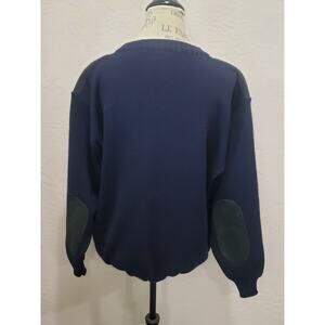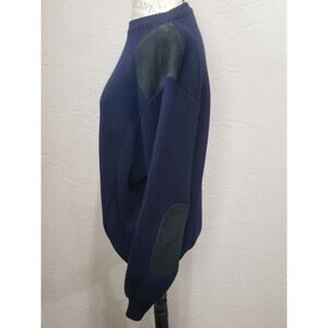 Vintage Barbour Pure Wool & Suede Leather Navy Blue Jumper Sweater. Good preloved condition.