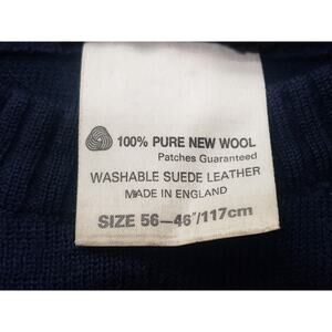 Vintage Barbour Pure Wool & Suede Leather Navy Blue Jumper Sweater | Size 56-46