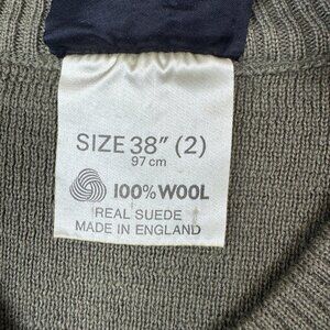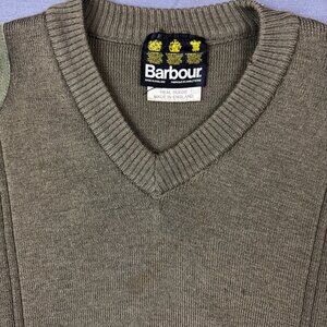 Vintage, Barbour, Sweater, Men's Small, Green, Sporting, Ribbed, Elbow Pad, Suede Trim, Wool.