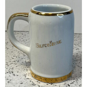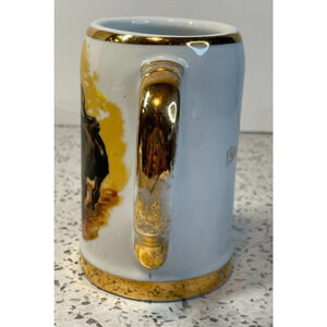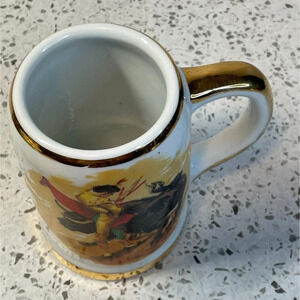 .You are purchasing a Vintage Barcelona Matador Bull Fighter Ceramic Tall Mug, White w/ Gold Accents.