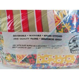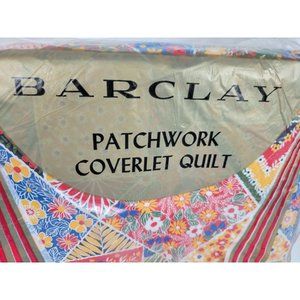 Up for sale is this vintage patchwork coverlet quilt produced by Barclay. The pattern is called Romany, and it features multi-colored flowers on multi-colored patches. The finished size is 76x86 which I believe is a full. The cut size is 80x90. Does not appear to have been used. The packaging is open at the top. Nice vintage quilt overall. As always, thank you for your interest. Good luck, and happy buying!