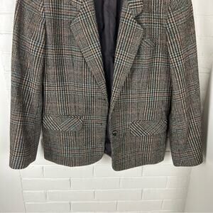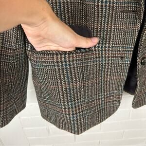 Good pre worn vintage condition. Amazing wool tweed blazer. Herringbone Classic print. Missing care tag but this is absolutely a wool bled. Two front buttons. Front pockets. Very dark or light academia. Fits a size L imo. All sales final.