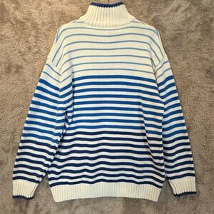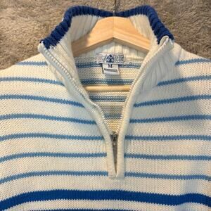 Vintage Bare Fox Blue White Stripe Pullover Ski Sweater M Medium 1/4 Zip