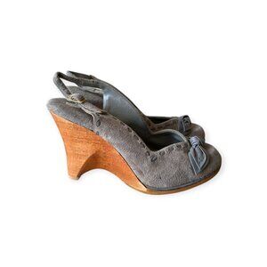 Vintage Baretraps Wedge Sling Back Pumps, Size 7 1/2. Gray