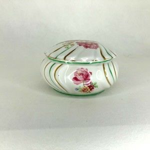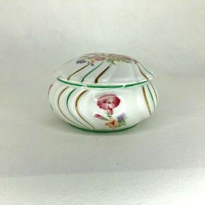 Vintage Porcelain Trinket Vanity Bowl w Lid Bareuther Bavaria Hand Painting