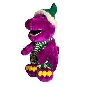 Vintage Barney 22" Plush Holiday Edition With Green Hat & Scarf