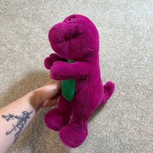 Relive your childhood with this vintage 1992 Barney plush! This adorable purple dinosaur, with its signature green belly and friendly smile, is ready to be your new snuggle buddy. Feel the nostalgia wash over you as you hold this classic stuffed animal, complete with embroidered details and a soft, huggable texture. Perfect for collectors, kids, or anyone who wants a piece of 90s nostalgia, this Barney plush will bring joy and comfort to any playroom, bedroom, or even as a decorative piece on your desk.