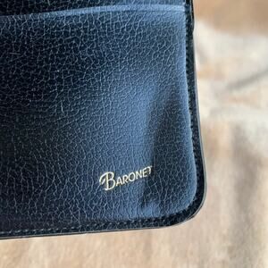 Vintage Baronet Wallet Kiss Clasp Metal Diamond Studs Navy Blue