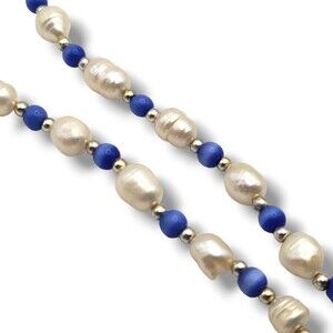 Vintage Baroque Freshwater Pearls Blue Cat Eye Gold Tone Spacer Collar Necklace