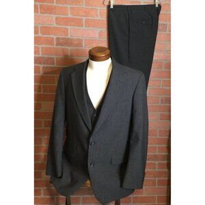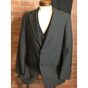 Vintage Barrister Mens 3 Piece Suit Dark Gray Striped Coat 40 Pants 34 x 31
