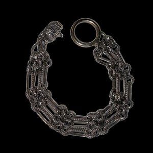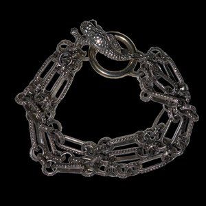 Rare and beautiful vintage sterling silver multiple chain toggle frog bracelet. Hand crafted fine jewelry. The chains have amazing texture. This bracelet is substantial and makes a lovely statement piece.