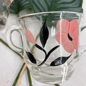 Vintage Bartlett Collins Pink Black 1950's MCM Hand Painted Rose Flower Sugar Creamer Set
