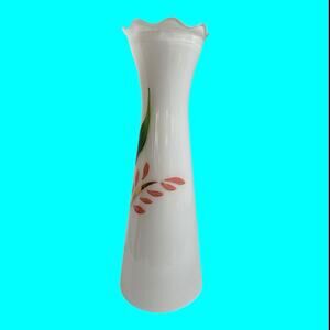Vintage Bartlett Collins Bud Vase Hand Painted White Blown Glass Floral 9”
