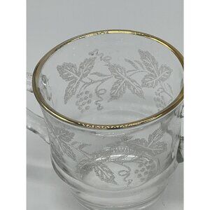Add a touch of vintage charm to your dining table with this beautiful Bartlett Collins Frosted Grapes Cream & Sugar Set. The set includes a creamer and sugar bowl, both made of high-quality glass with a stunning frosted finish. The gold rim adds an elegant touch to the set, making it perfect for any mid-century modern enthusiast.