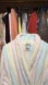 Soft robe with stripes in pastel shades. 2 front pockets, tie inside and waist tie,,cuff sleeves, 95 cotton, 5% rayon Excellent condition, med- large best
