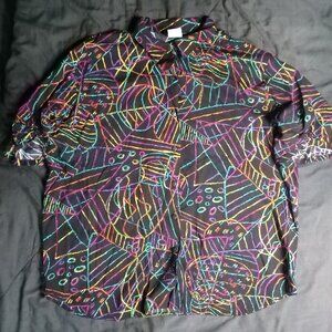 Vintage Basic Editions Abstract Geometric Hawaiian Shirt