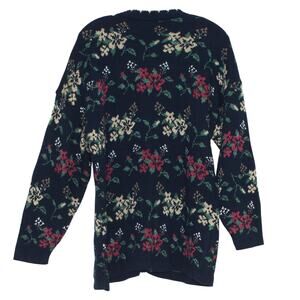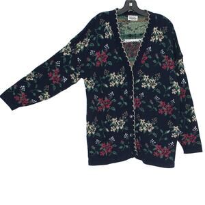 Vintage Basic Editions Cardigan Sweater Floral Cottage Academia 90s Navy Blue 2X